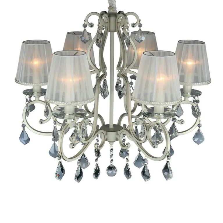 Преобладающий цвет люстры: Белый, плафонов: Белый, арматуры: Белый; материал изготовления арматуры: Металл, размеры, мм: / высота 600 / диаметр 700. Общая мощность – 240 Ватт, а максимальная площадь освещения до 13,3 м2. Основной тип ламп, предусмотренный производителем: Накаливания с цоколем E14. В зависимости от предпочтений можно использовать лампы теплового, холодного или нейтрального света, за исключением люстр с типом цоколя LED.