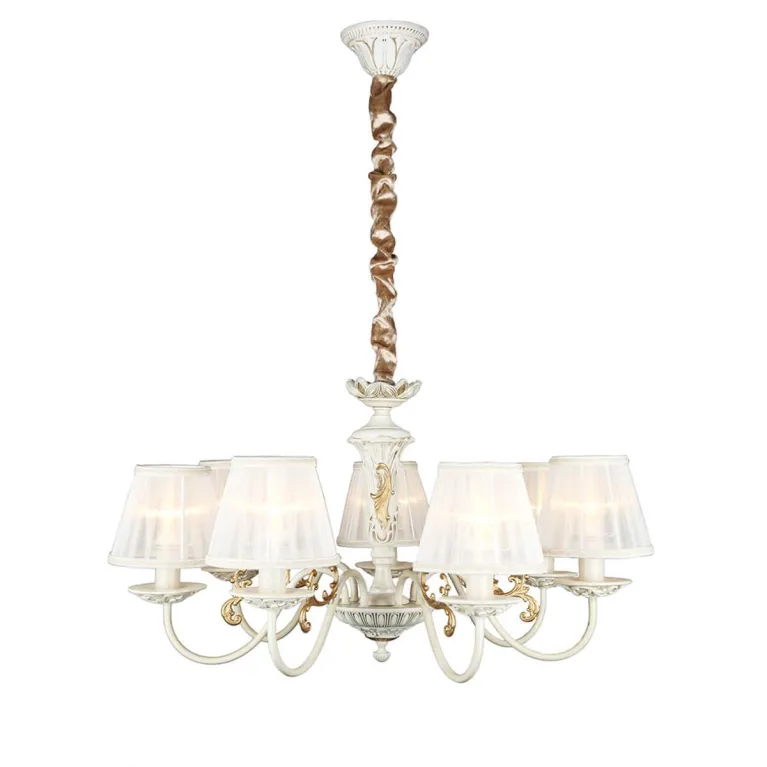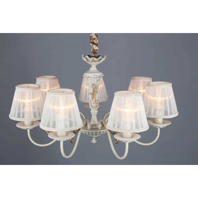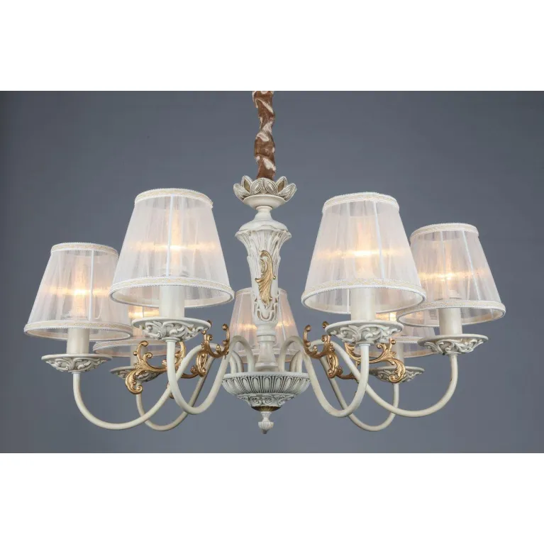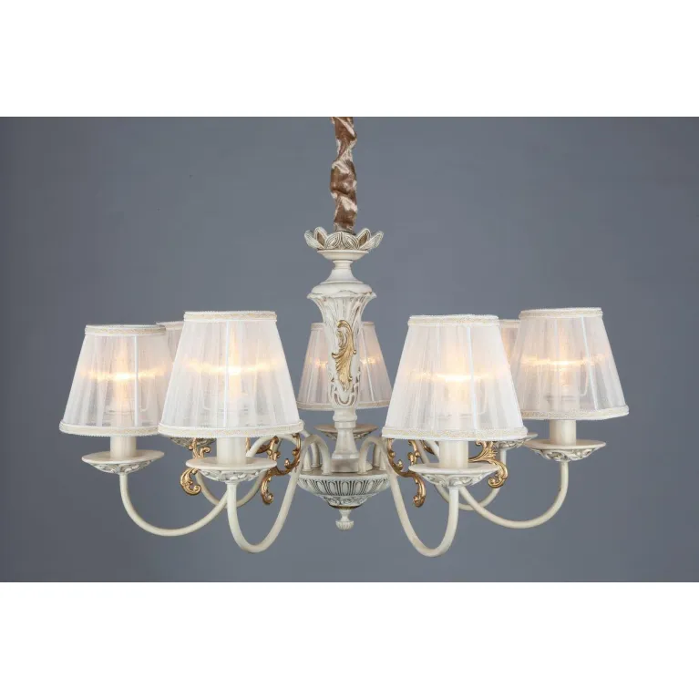 Преобладающий цвет люстры: Белый, плафонов: Белый, арматуры: Бежевый; материал изготовления арматуры: Металл, размеры, мм: / высота 600 / диаметр 700. Общая мощность – 280 Ватт, а максимальная площадь освещения до 15,6 м2. Основной тип ламп, предусмотренный производителем: Накаливания с цоколем E14. В зависимости от предпочтений можно использовать лампы теплового, холодного или нейтрального света, за исключением люстр с типом цоколя LED.