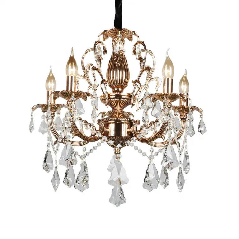 Преобладающий цвет люстры: Золотой, арматуры: Золото; материал изготовления арматуры: Металл, размеры, мм: / высота 800 / диаметр 600. Общая мощность – 300 Ватт, а максимальная площадь освещения до 16,7 м2. Основной тип ламп, предусмотренный производителем: Накаливания с цоколем E14. В зависимости от предпочтений можно использовать лампы теплового, холодного или нейтрального света, за исключением люстр с типом цоколя LED.