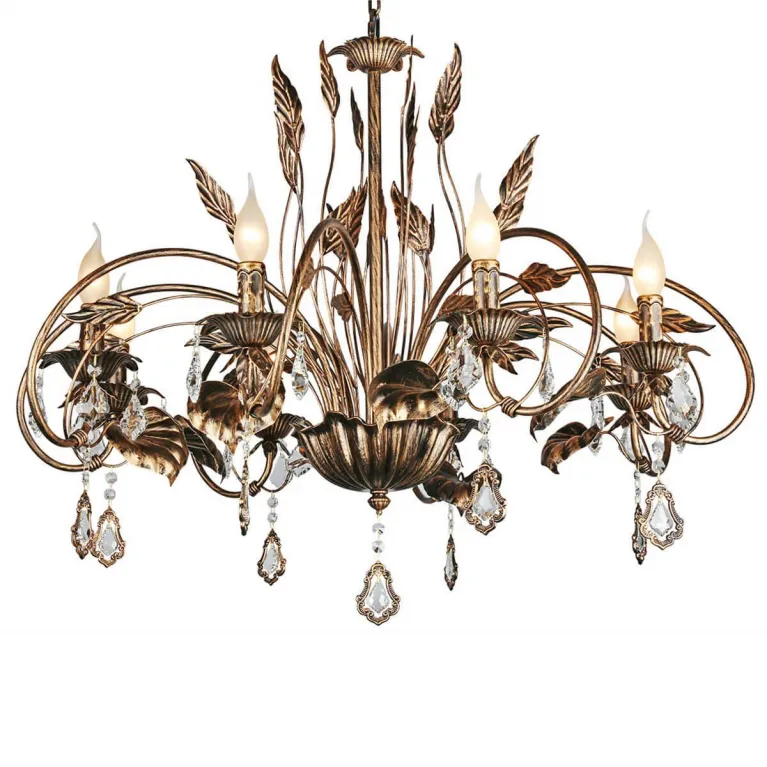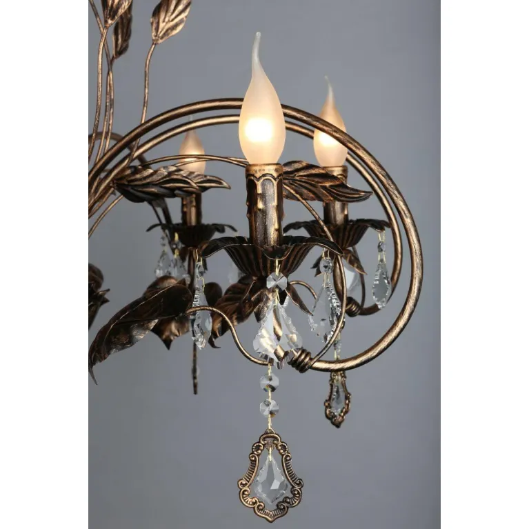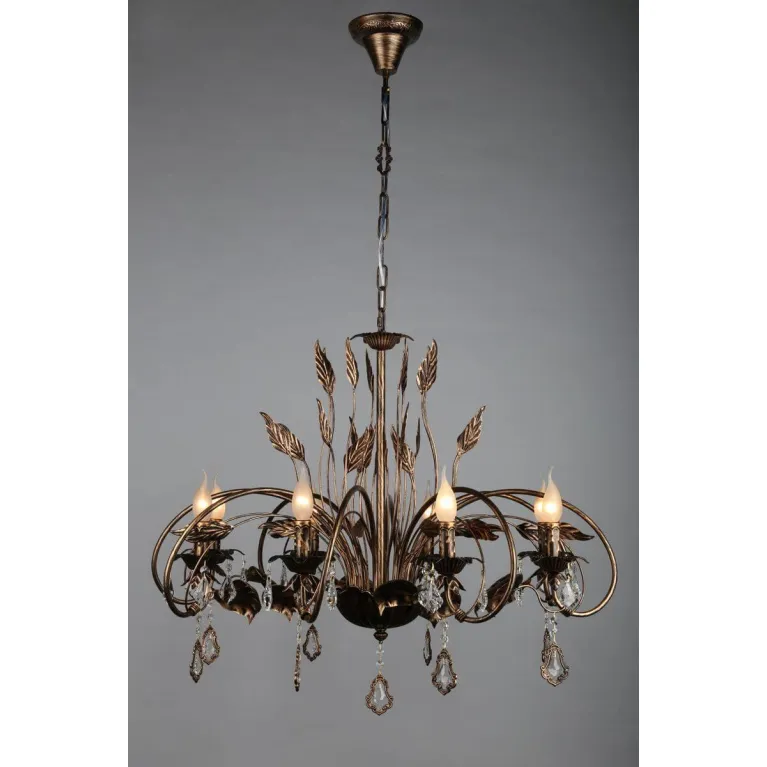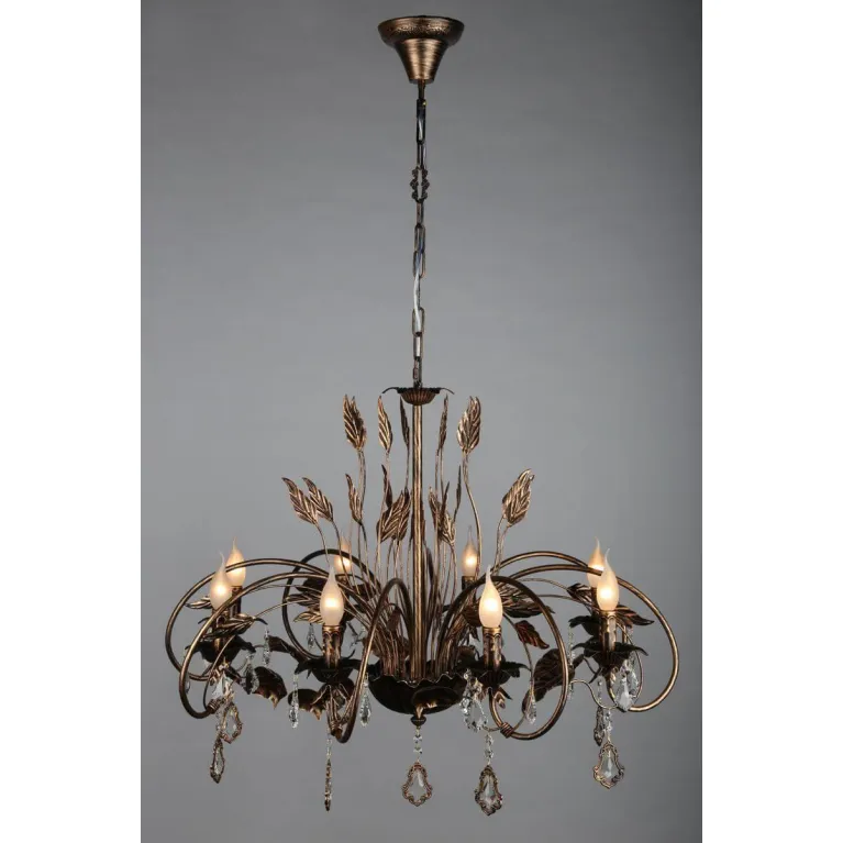 Преобладающий цвет люстры: Коричневый, арматуры: Коричневый; материал изготовления арматуры: Металл, размеры, мм: / высота 900 / диаметр 860. Общая мощность – 320 Ватт, а максимальная площадь освещения до 17,8 м2. Основной тип ламп, предусмотренный производителем: Накаливания с цоколем E14. В зависимости от предпочтений можно использовать лампы теплового, холодного или нейтрального света, за исключением люстр с типом цоколя LED.