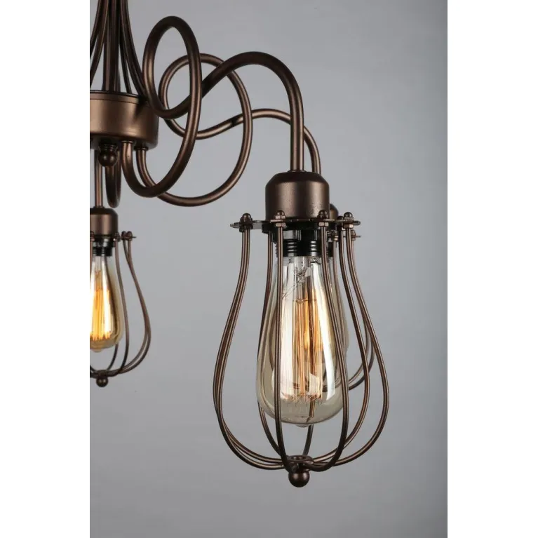 Преобладающий цвет люстры: Коричневый, плафонов: Коричневый, арматуры: Коричневый; материал изготовления арматуры: Металл, размеры, мм: / высота 520 / диаметр 570. Общая мощность – 200 Ватт, а максимальная площадь освещения до 11,1 м2. Основной тип ламп, предусмотренный производителем: Накаливания с цоколем E14. В зависимости от предпочтений можно использовать лампы теплового, холодного или нейтрального света, за исключением люстр с типом цоколя LED.
