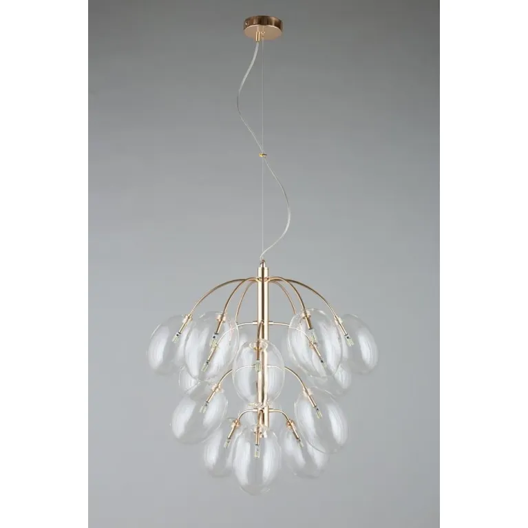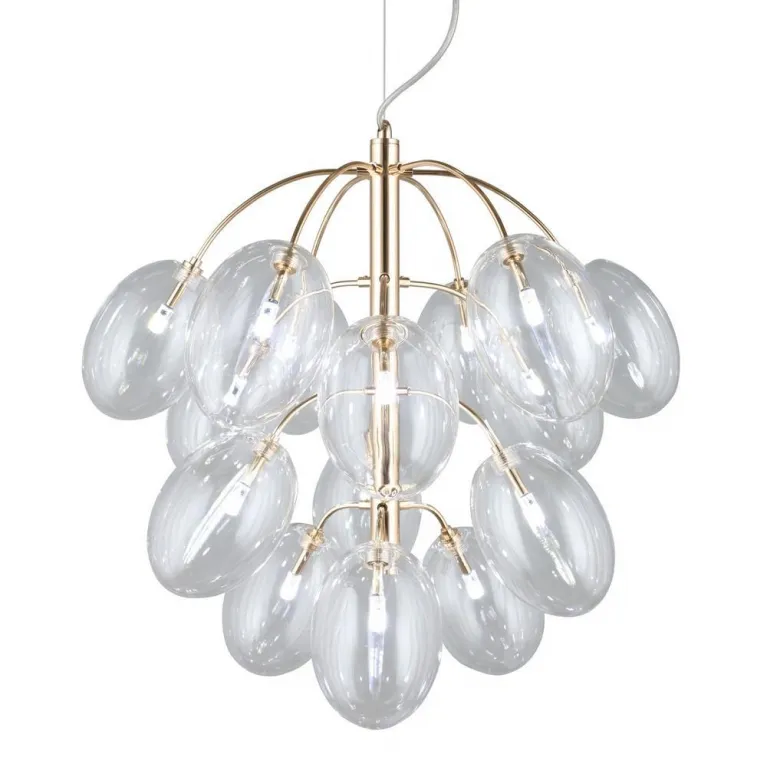Подвесная конструкция люстры позволяет регулировать высоту подвешивания, что обеспечивает удобство при установке и адаптации к различным высотам потолков. Надежное крепление гарантирует стабильность и безопасность в эксплуатации.