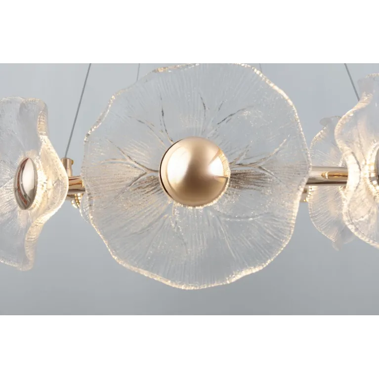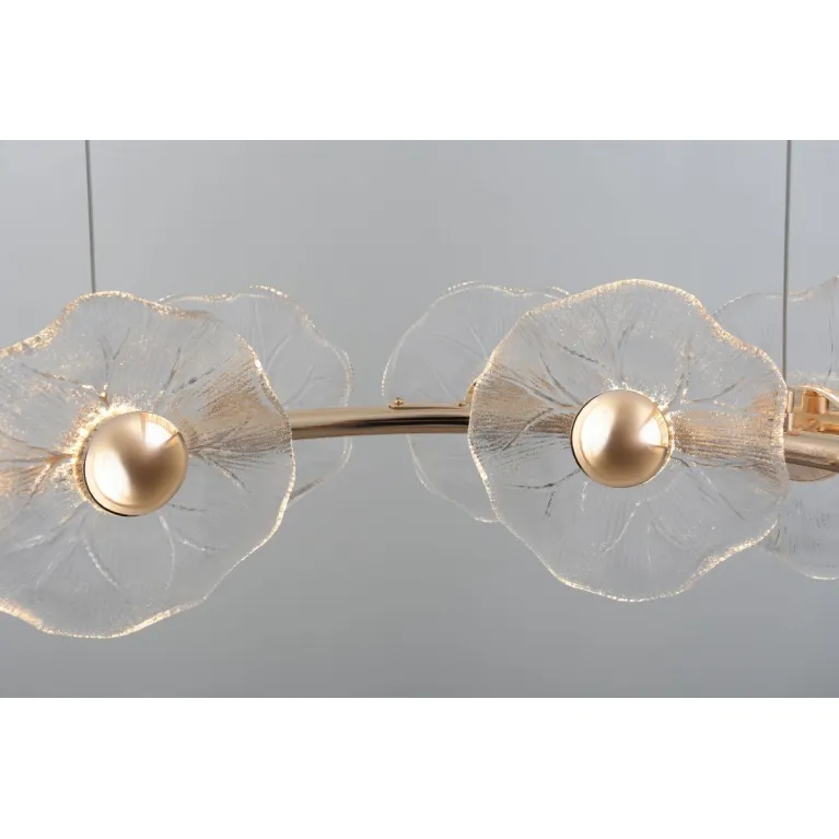 Преобладающий цвет плафонов: Прозрачный, арматуры: Золото; материал изготовления арматуры: Металл, размеры, мм: / высота 700 / диаметр 670. Общая мощность – 30 Ватт, а максимальная площадь освещения до 8 м2. Основной тип ламп, предусмотренный производителем: Светодиодная с цоколем LED. В зависимости от предпочтений можно использовать лампы теплового, холодного или нейтрального света, за исключением люстр с типом цоколя LED.