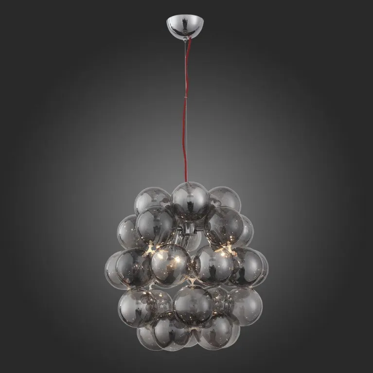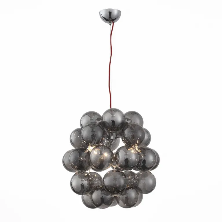 Преобладающий цвет люстры: Серый, плафонов: Серый, арматуры: Хром; материал изготовления арматуры: Металл, размеры, мм: / высота 480 / диаметр 500. Общая мощность – 180 Ватт, а максимальная площадь освещения до 10 м2. Основной тип ламп, предусмотренный производителем: Накаливания с цоколем E27. В зависимости от предпочтений можно использовать лампы теплового, холодного или нейтрального света, за исключением люстр с типом цоколя LED.