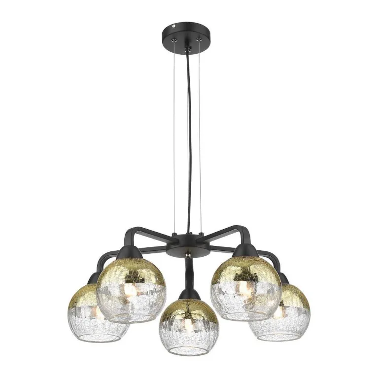 Светильник выполнен из качественных материалов, таких как металл и стекло. Основание люстры имеет черный цвет, что придает ей особый шарм и утонченность. Плафоны изготовлены из прочного и долговечного стекла, которое прекрасно рассеивает свет и создает мягкое и приятное освещение.