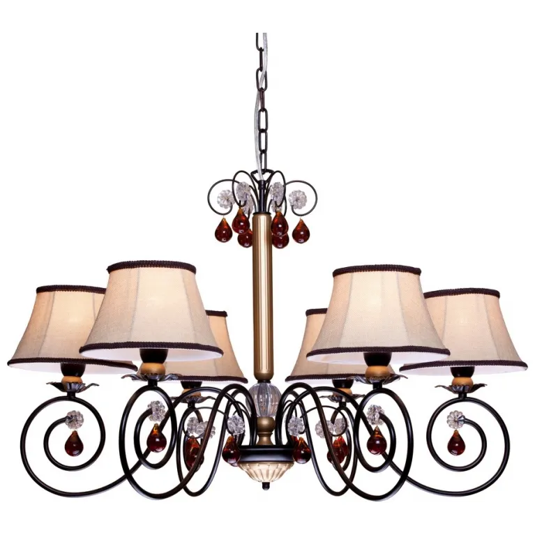 Преобладающий цвет плафонов: Бежевый, арматуры: Черный; материал изготовления арматуры: Металл, размеры, мм: / высота 1010 / диаметр 820. Общая мощность – 240 Ватт, а максимальная площадь освещения до 12 м2. Основной тип ламп, предусмотренный производителем: Накаливания с цоколем E14. В зависимости от предпочтений можно использовать лампы теплового, холодного или нейтрального света, за исключением люстр с типом цоколя LED.