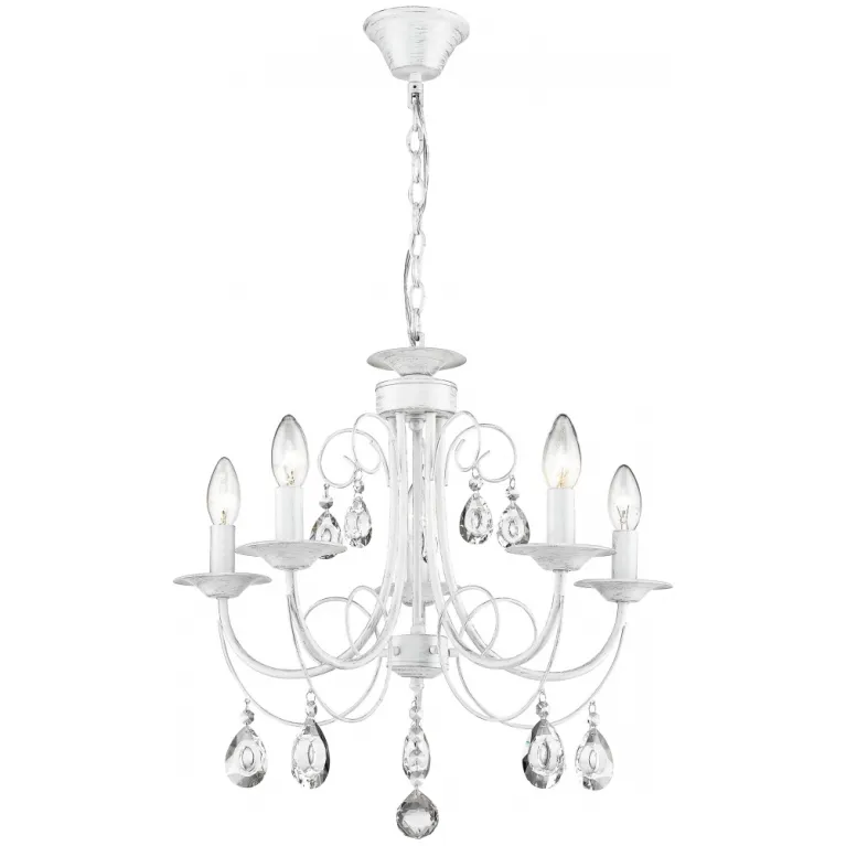 Преобладающий цвет арматуры: Белый с патиной; материал изготовления арматуры: Металл, размеры, мм: / высота 950 / диаметр 530. Общая мощность – 300 Ватт, а максимальная площадь освещения до 15 м2. Основной тип ламп, предусмотренный производителем: Накаливания с цоколем E14. В зависимости от предпочтений можно использовать лампы теплового, холодного или нейтрального света, за исключением люстр с типом цоколя LED.