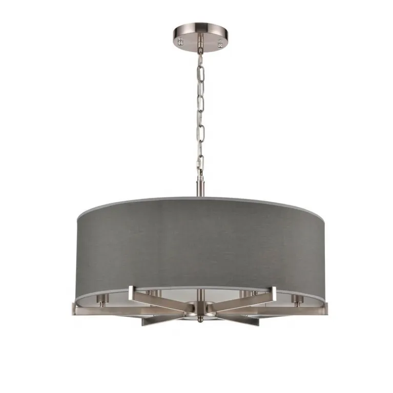 Преобладающий цвет люстры: Хром, плафонов: Серый, арматуры: Хром; материал изготовления арматуры: Металл, размеры, мм: / высота 1165 / диаметр 630. Общая мощность – 360 Ватт. Основной тип ламп, предусмотренный производителем: Накаливания с цоколем E27. В зависимости от предпочтений можно использовать лампы теплового, холодного или нейтрального света, за исключением люстр с типом цоколя LED.