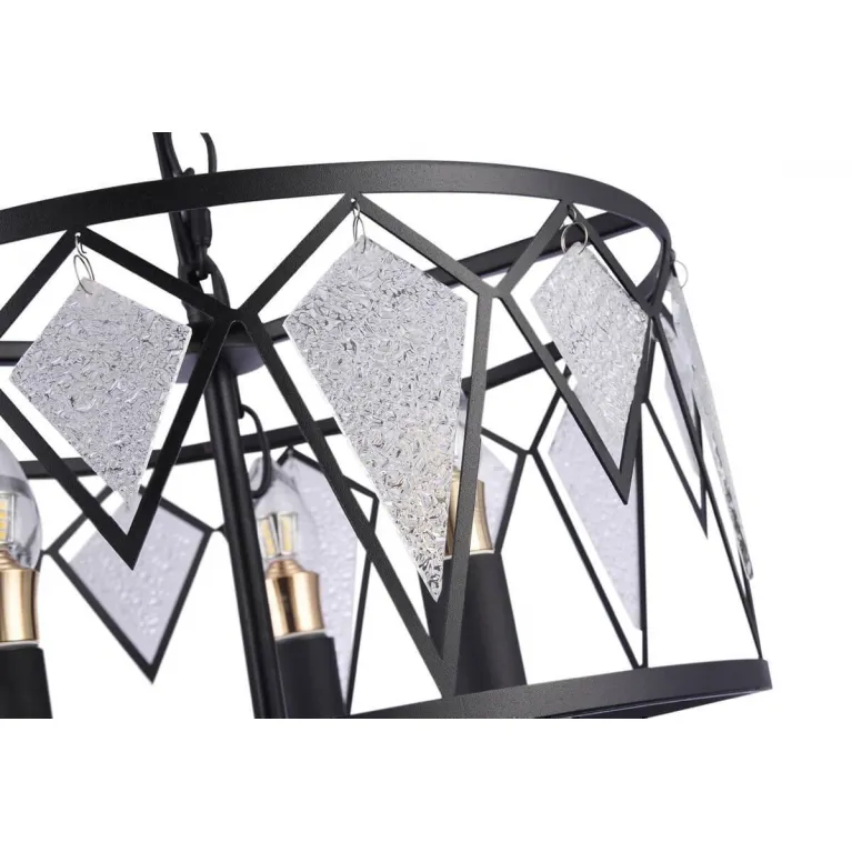 Преобладающий цвет люстры: Черный, плафонов: Прозрачный, арматуры: Черный; материал изготовления арматуры: Металл, размеры, мм: / высота 1000 / диаметр 360. Общая мощность – 120 Ватт. Основной тип ламп, предусмотренный производителем: Накаливания с цоколем E14. В зависимости от предпочтений можно использовать лампы теплового, холодного или нейтрального света, за исключением люстр с типом цоколя LED.
