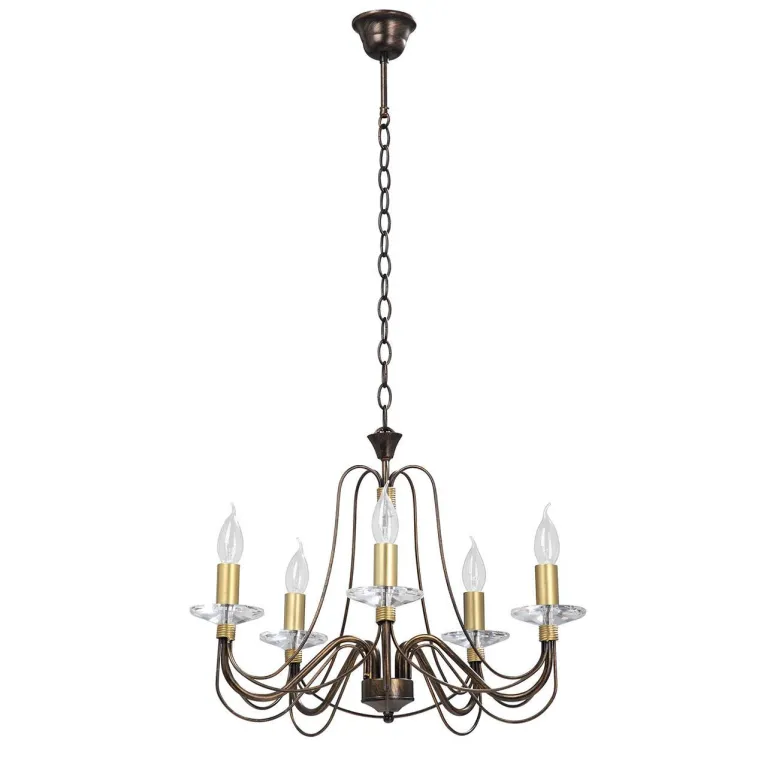 Преобладающий цвет люстры: Бронза, арматуры: Бронза; материал изготовления арматуры: Металл, размеры, мм: длина 520 / ширина 520 / высота 960 Общая мощность – 300 Ватт, а максимальная площадь освещения до 15 м2. Основной тип ламп, предусмотренный производителем: Накаливания с цоколем E14. В зависимости от предпочтений можно использовать лампы теплового, холодного или нейтрального света, за исключением люстр с типом цоколя LED.