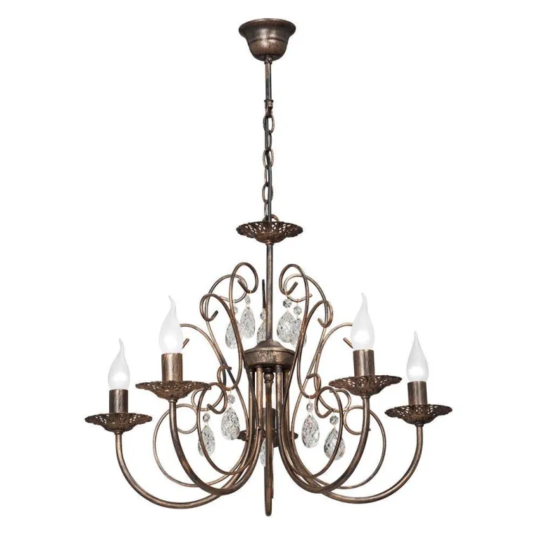 Преобладающий цвет люстры: Бронза, арматуры: Бронза; материал изготовления арматуры: Металл, размеры, мм: / высота 780 / диаметр 600. Общая мощность – 300 Ватт, а максимальная площадь освещения до 15 м2. Основной тип ламп, предусмотренный производителем: Накаливания с цоколем E14. В зависимости от предпочтений можно использовать лампы теплового, холодного или нейтрального света, за исключением люстр с типом цоколя LED.