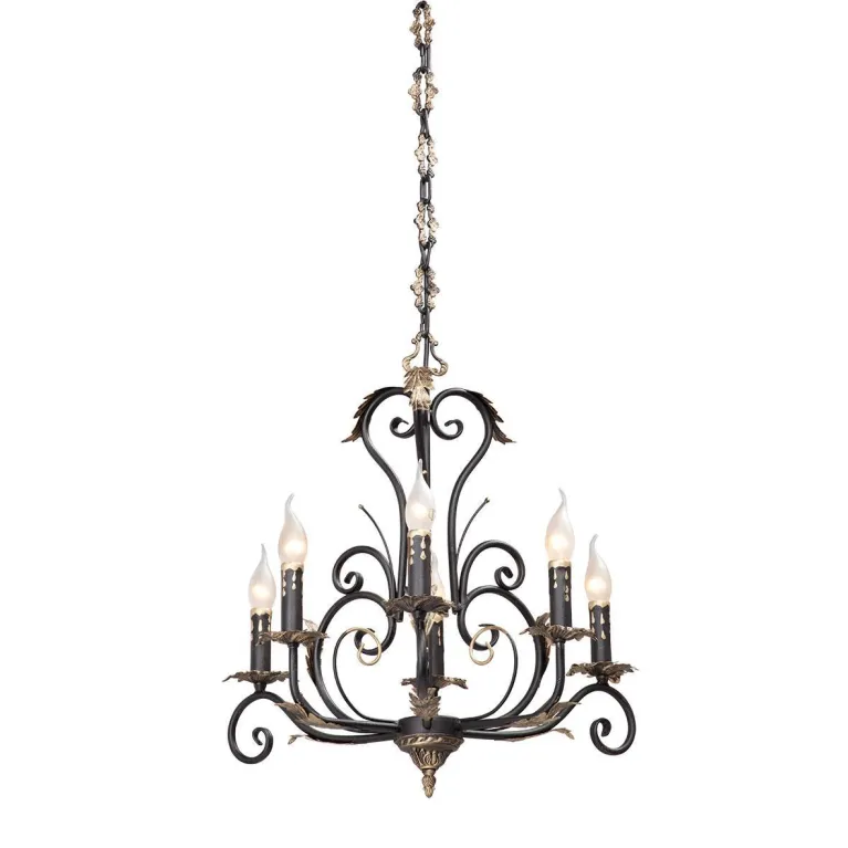 Преобладающий цвет люстры: Черный, арматуры: Черный; материал изготовления арматуры: Металл, размеры, мм: / высота 1780 / диаметр 520. Общая мощность – 360 Ватт, а максимальная площадь освещения до 18 м2. Основной тип ламп, предусмотренный производителем: Накаливания с цоколем E14. В зависимости от предпочтений можно использовать лампы теплового, холодного или нейтрального света, за исключением люстр с типом цоколя LED.