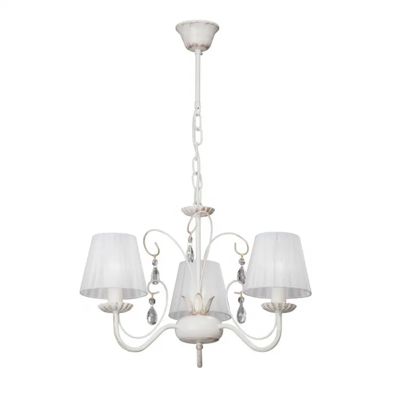 Люстра оснащена тремя источниками света с цоколем E14, что позволяет использовать лампы накаливания, энергосберегающие или светодиодные. Такое количество ламп обеспечивает яркое и равномерное освещение пространства площадью до 12 квадратных метров, создавая уютную атмосферу в доме.