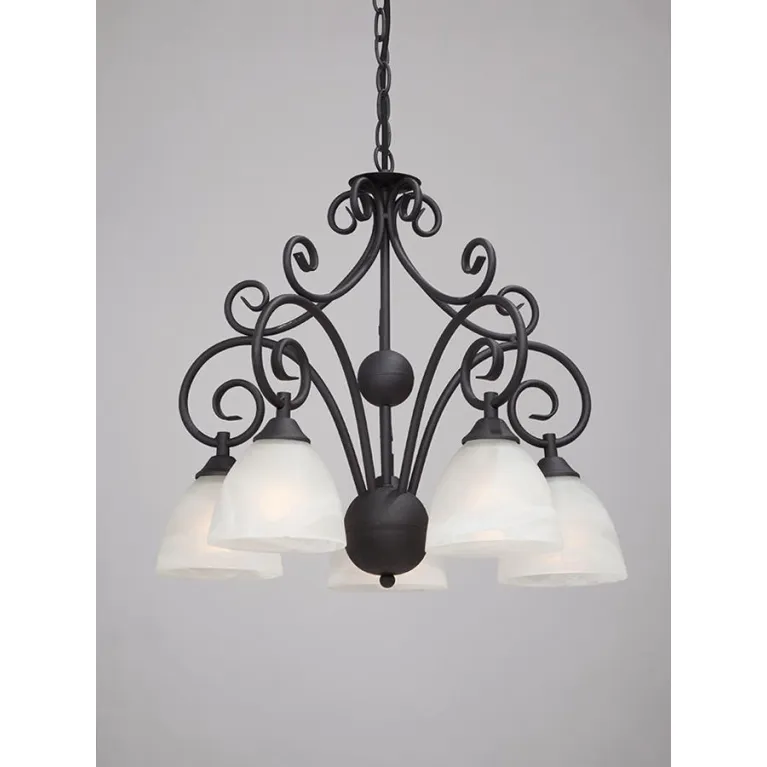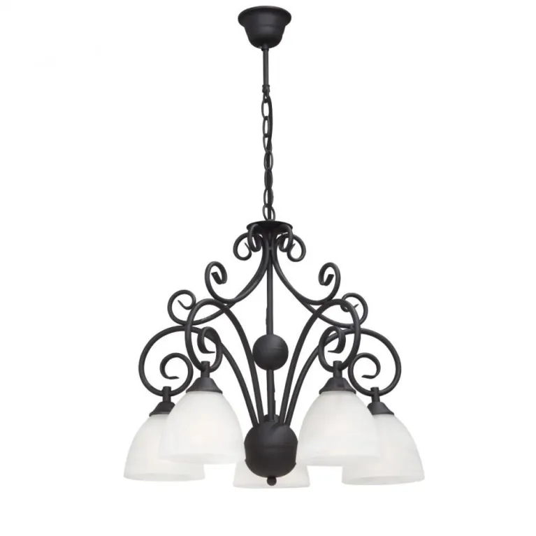 Преобладающий цвет люстры: Белый, плафонов: Белый, арматуры: Черный; материал изготовления арматуры: Металл, размеры, мм: / высота 810 / диаметр 470. Общая мощность – 300 Ватт, а максимальная площадь освещения до 15 м2. Основной тип ламп, предусмотренный производителем: Накаливания с цоколем E27. В зависимости от предпочтений можно использовать лампы теплового, холодного или нейтрального света, за исключением люстр с типом цоколя LED.