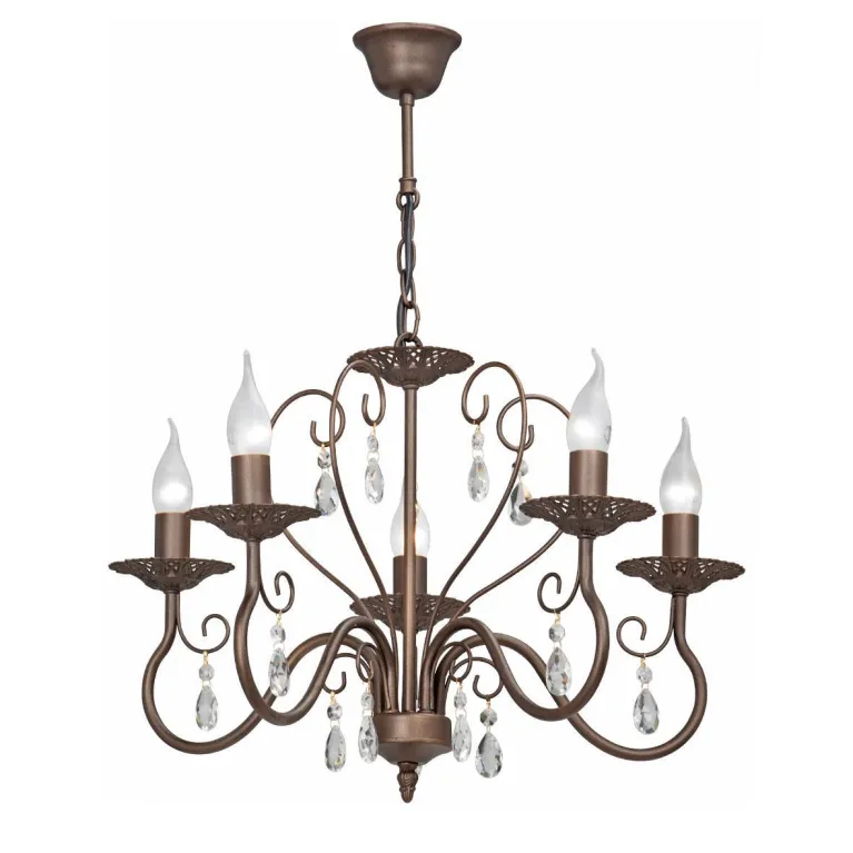 Преобладающий цвет люстры: Бронза, арматуры: Бронза; материал изготовления арматуры: Металл, размеры, мм: / высота 660 / диаметр 530. Общая мощность – 300 Ватт, а максимальная площадь освещения до 15 м2. Основной тип ламп, предусмотренный производителем: Накаливания с цоколем E14. В зависимости от предпочтений можно использовать лампы теплового, холодного или нейтрального света, за исключением люстр с типом цоколя LED.