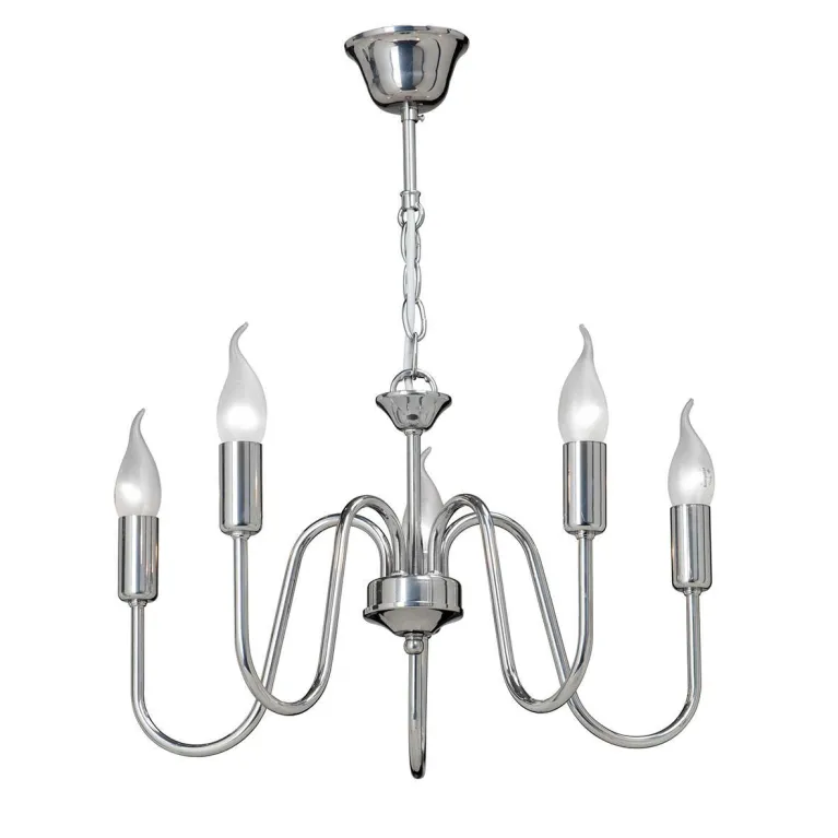 Преобладающий цвет люстры: Хром, арматуры: Хром; материал изготовления арматуры: Металл, размеры, мм: / высота 540 / диаметр 450. Общая мощность – 300 Ватт, а максимальная площадь освещения до 15 м2. Основной тип ламп, предусмотренный производителем: Накаливания с цоколем E14. В зависимости от предпочтений можно использовать лампы теплового, холодного или нейтрального света, за исключением люстр с типом цоколя LED.
