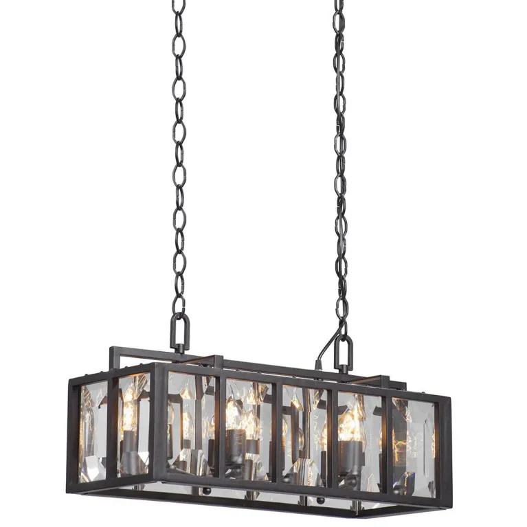Преобладающий цвет люстры: Черный, плафонов: Прозрачный, арматуры: Черный; материал изготовления арматуры: Металл, размеры, мм: длина 700 / ширина 280 / высота 1530 Общая мощность – 600 Ватт, а максимальная площадь освещения до 30 м2. Основной тип ламп, предусмотренный производителем: Накаливания с цоколем E14. В зависимости от предпочтений можно использовать лампы теплового, холодного или нейтрального света, за исключением люстр с типом цоколя LED.