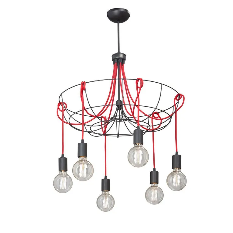 Преобладающий цвет люстры: Красный, арматуры: Черный; материал изготовления арматуры: Металл, размеры, мм: / высота 1330 / диаметр 600. Общая мощность – 360 Ватт, а максимальная площадь освещения до 18 м2. Основной тип ламп, предусмотренный производителем: Накаливания с цоколем E14. В зависимости от предпочтений можно использовать лампы теплового, холодного или нейтрального света, за исключением люстр с типом цоколя LED.