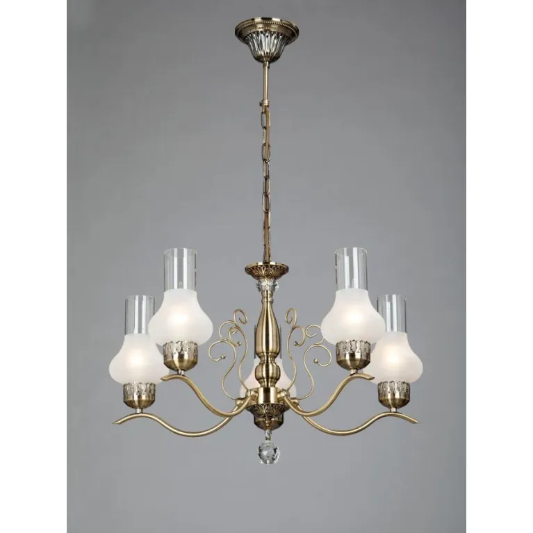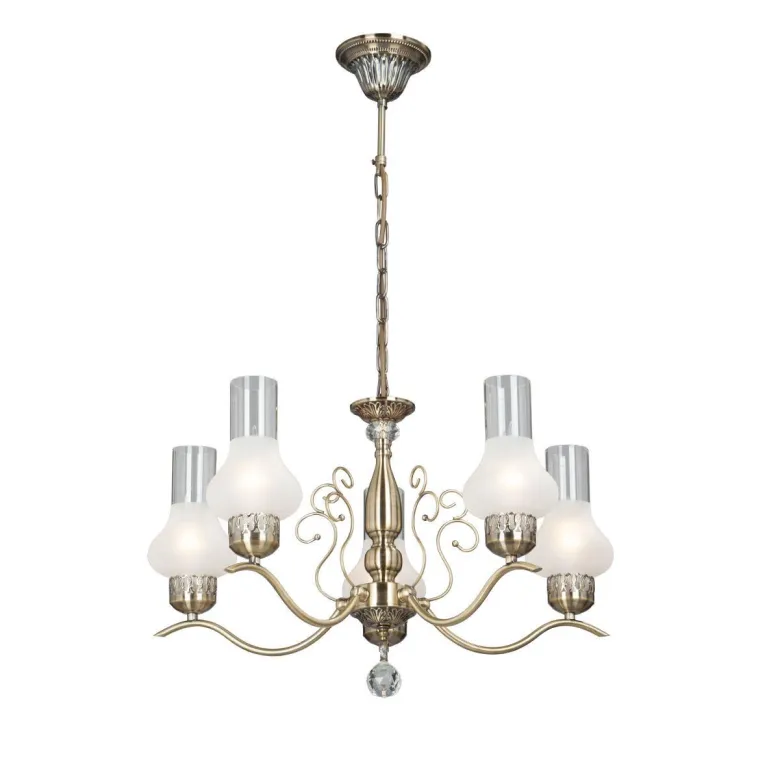 Преобладающий цвет люстры: Белый, плафонов: Белый, арматуры: Бронза; материал изготовления арматуры: Металл, размеры, мм: / высота 390 / диаметр 390. Общая мощность – 200 Ватт, а максимальная площадь освещения до 10 м2. Основной тип ламп, предусмотренный производителем: Накаливания с цоколем E27. В зависимости от предпочтений можно использовать лампы теплового, холодного или нейтрального света, за исключением люстр с типом цоколя LED.