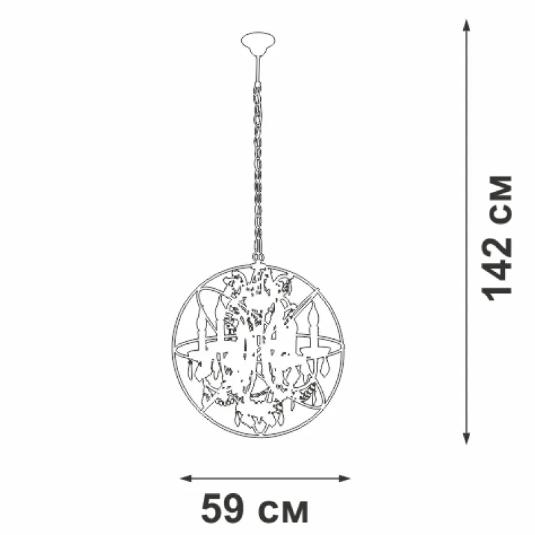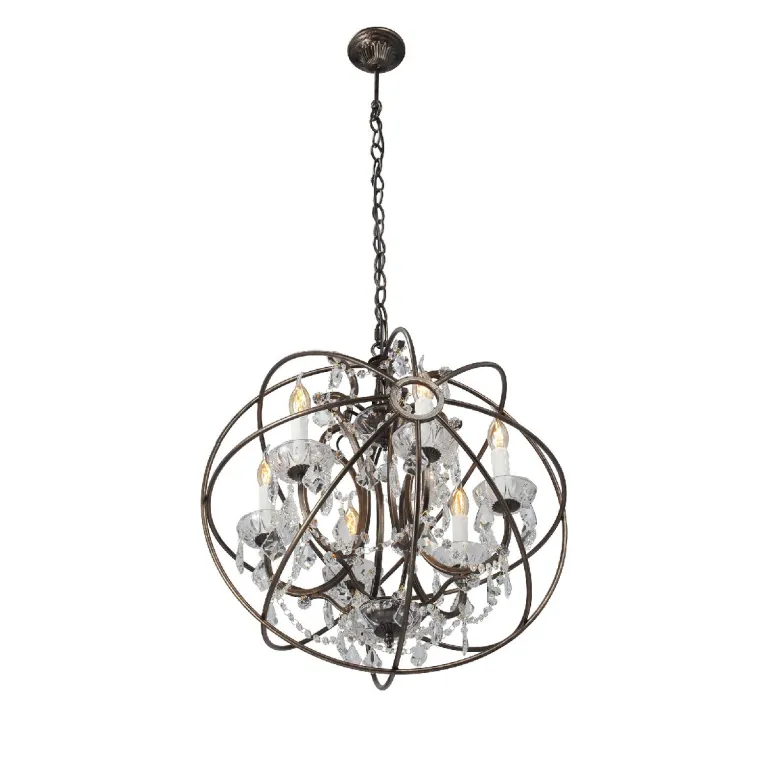 Люстра оснащена 6 рожками с цоколем E14, что позволяет использовать различные типы ламп. Благодаря регулируемой высоте подвеса, вы можете настроить оптимальное освещение в соответствии с вашими потребностями. Площадь освещения составляет до 13 квадратных метров, что делает эту люстру идеальным выбором для небольших помещений.