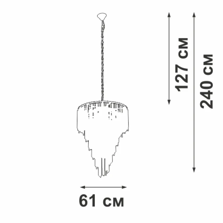 Преобладающий цвет плафонов: Белый, арматуры: Хром; материал изготовления арматуры: Металл, размеры, мм: / высота 2400 / диаметр 610. Общая мощность – 400 Ватт, а максимальная площадь освещения до 30 м2. Основной тип ламп, предусмотренный производителем: Накаливания с цоколем E14. В зависимости от предпочтений можно использовать лампы теплового, холодного или нейтрального света, за исключением люстр с типом цоколя LED.