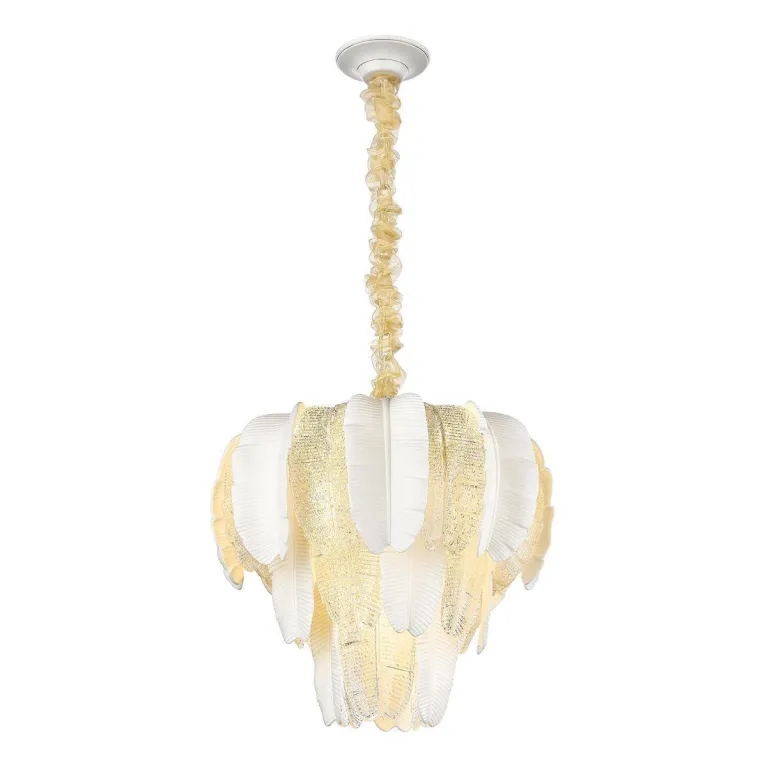 Преобладающий цвет люстры: Белый, плафонов: Прозрачный, арматуры: Золотой; материал изготовления арматуры: Металл, размеры, мм: / высота 450 / диаметр 505. Общая мощность – 400 Ватт, а максимальная площадь освещения до 20 м2. Основной тип ламп, предусмотренный производителем: Накаливания с цоколем E14. В зависимости от предпочтений можно использовать лампы теплового, холодного или нейтрального света, за исключением люстр с типом цоколя LED.