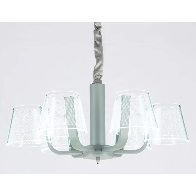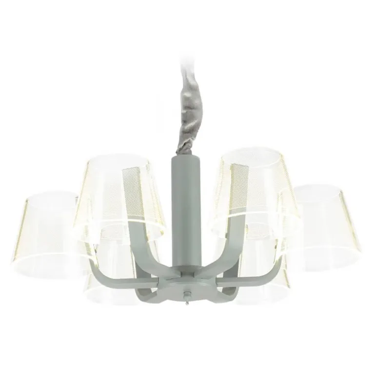Преобладающий цвет люстры: Серый, плафонов: Прозрачный, арматуры: Серый; материал изготовления арматуры: Металл, размеры, мм: / высота 230 / диаметр 600. Общая мощность – 72 Ватт, а максимальная площадь освещения до 20 м2. Основной тип ламп, предусмотренный производителем: Светодиодная с цоколем LED. В зависимости от предпочтений можно использовать лампы теплового, холодного или нейтрального света, за исключением люстр с типом цоколя LED.