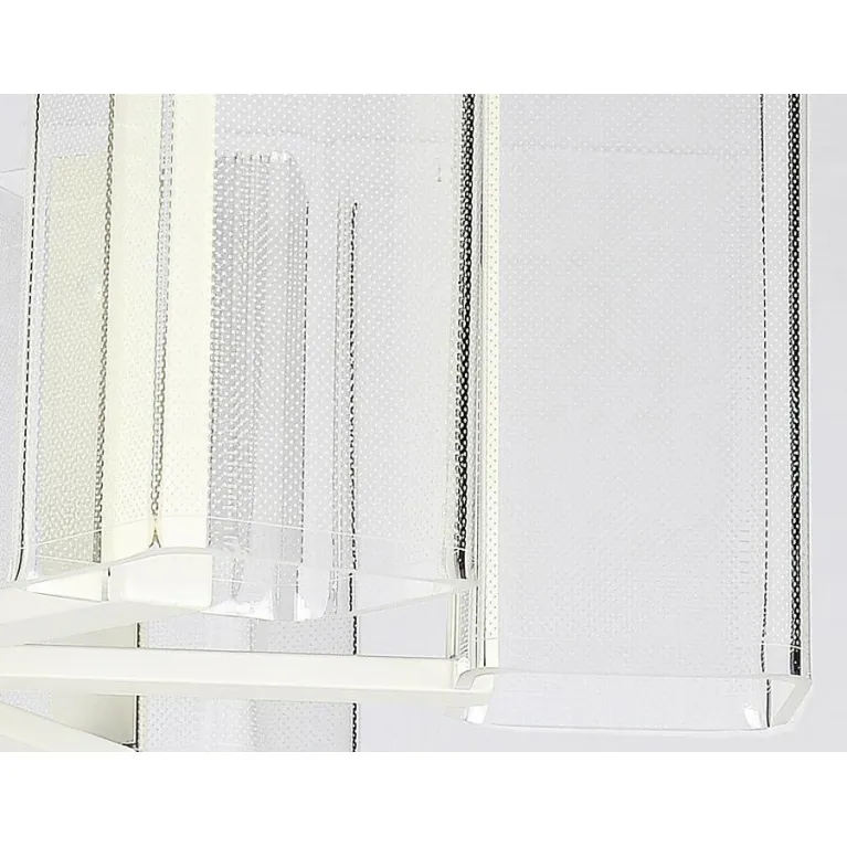 Преобладающий цвет люстры: Белый, плафонов: Прозрачный, арматуры: Белый; материал изготовления арматуры: Металл, размеры, мм: / высота 230 / диаметр 600. Общая мощность – 96 Ватт, а максимальная площадь освещения до 20 м2. Основной тип ламп, предусмотренный производителем: Светодиодная с цоколем LED. В зависимости от предпочтений можно использовать лампы теплового, холодного или нейтрального света, за исключением люстр с типом цоколя LED.