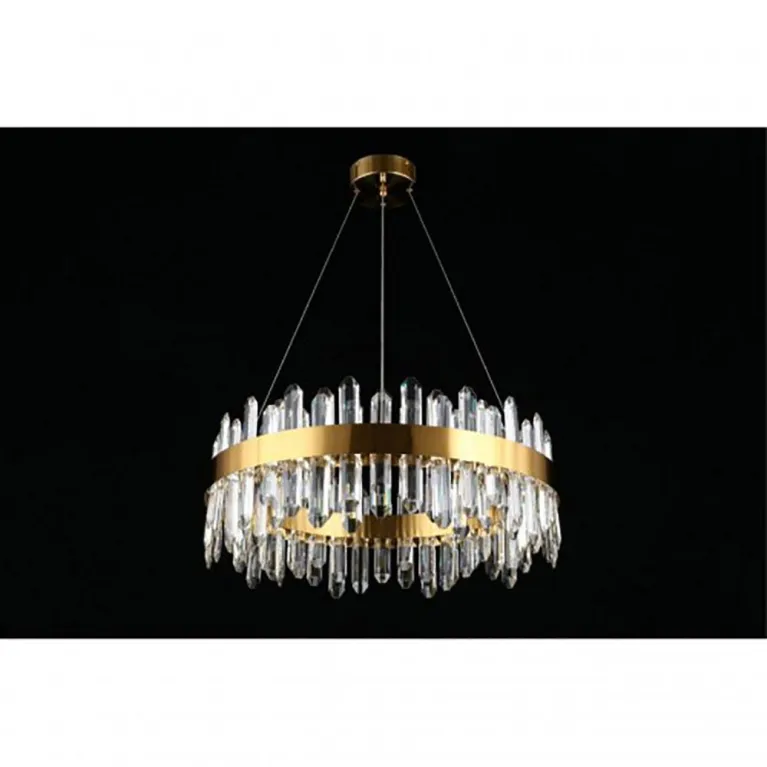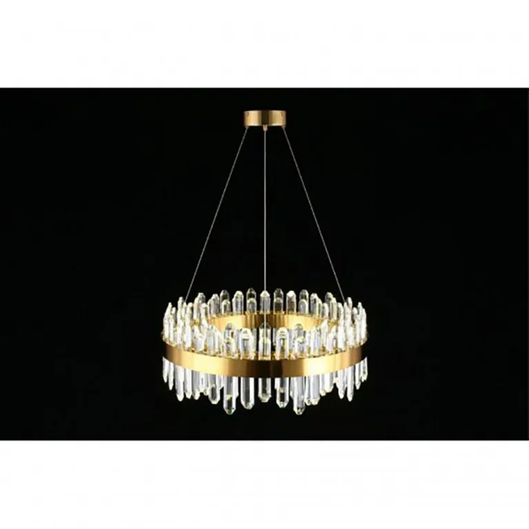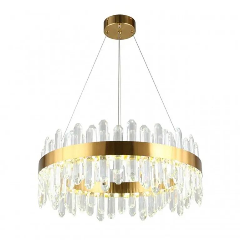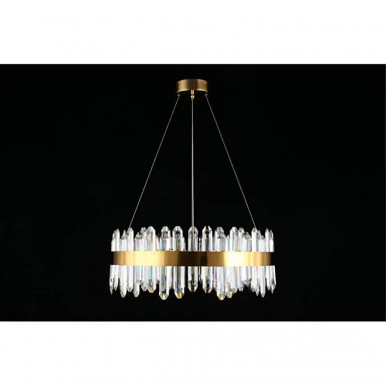 Преобладающий цвет люстры: Латунь, плафонов: Прозрачный, арматуры: Латунь; материал изготовления арматуры: Металл, размеры, мм: / высота 1300 / диаметр 580. Общая мощность – 78 Ватт. Основной тип ламп, предусмотренный производителем: Светодиодная с цоколем LED. В зависимости от предпочтений можно использовать лампы теплового, холодного или нейтрального света, за исключением люстр с типом цоколя LED.