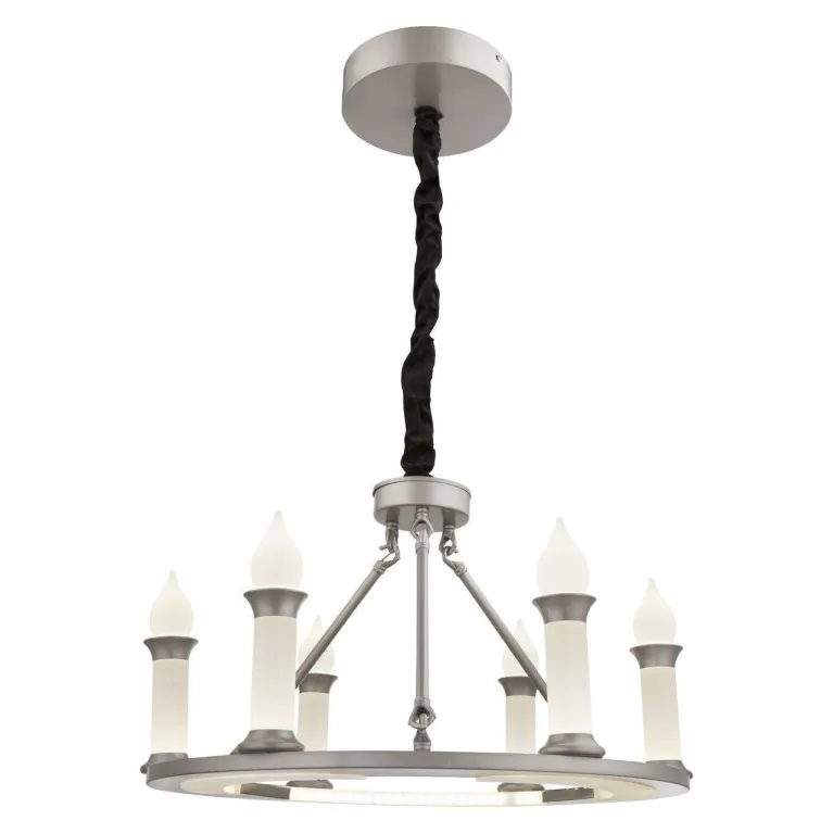 Преобладающий цвет арматуры: Матовый, никель; материал изготовления арматуры: Металл, размеры, мм: / высота 1200 / диаметр 530. Общая мощность – 40 Ватт. Основной тип ламп, предусмотренный производителем: Светодиодная с цоколем LED. В зависимости от предпочтений можно использовать лампы теплового, холодного или нейтрального света, за исключением люстр с типом цоколя LED.