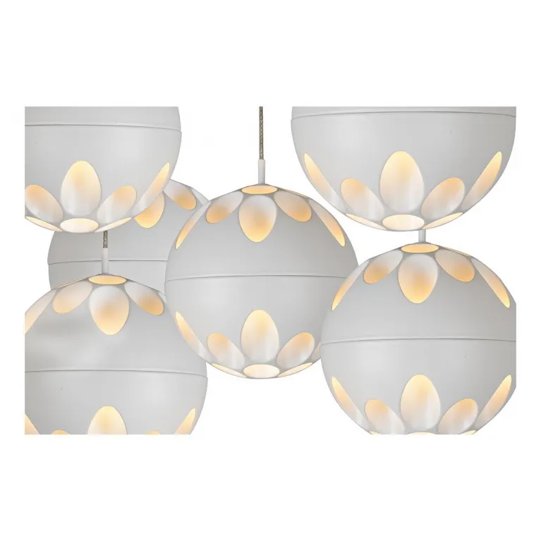 Люстра имеет шесть световых точек, направленных вниз, что обеспечивает максимальный уровень освещённости и комфортную атмосферу в помещении. Основание изготовлено из прочного металла, а плафоны - из высококачественного пластика, что гарантирует долговечность и надежность конструкции.