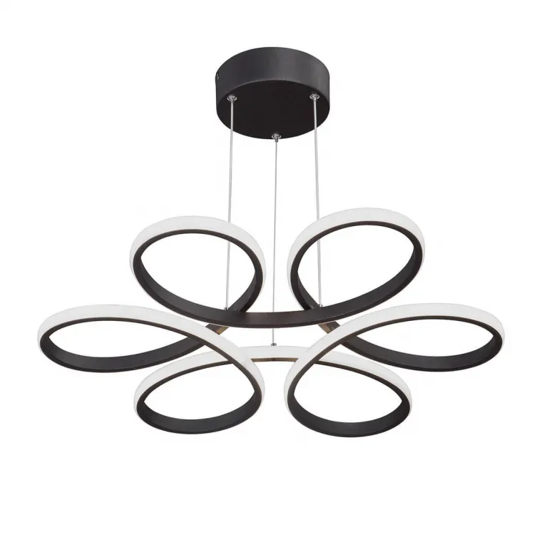 Плафоны светильника поворачиваются в двух плоскостях, что позволяет направлять свет в нужную сторону и создавать акцентное освещение. Подвесная конструкция люстры обеспечивает удобство монтажа и возможность регулировать высоту подвеса.