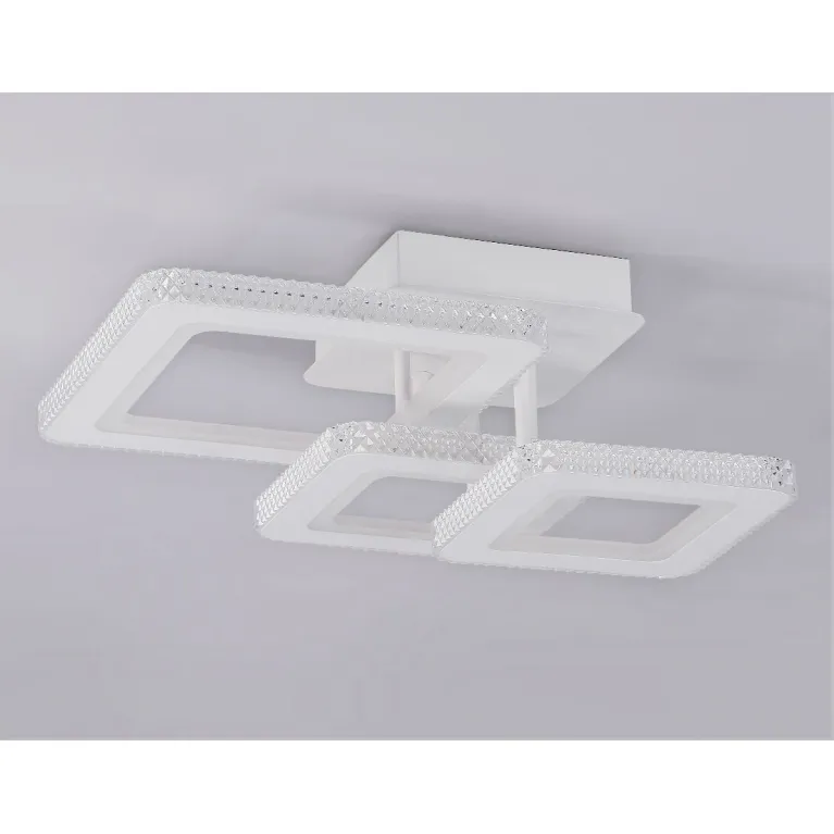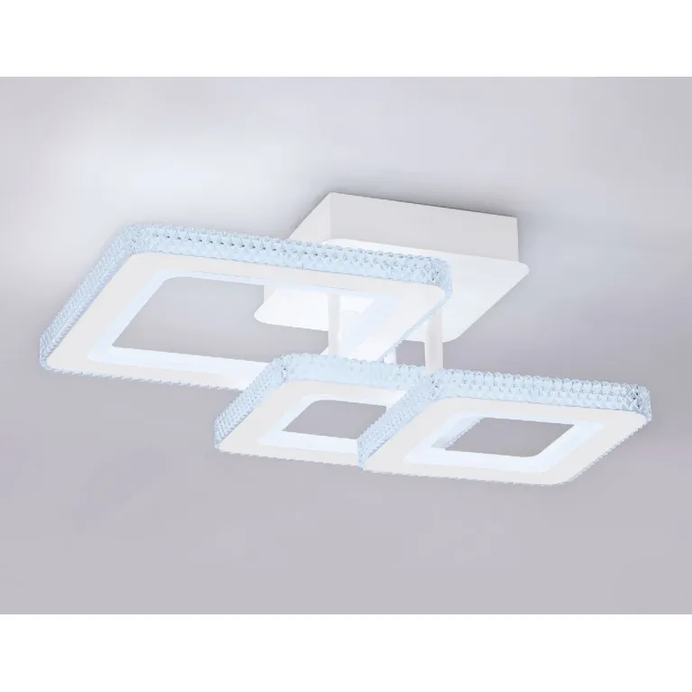 Преобладающий цвет плафонов: Прозрачный, арматуры: Белый; материал изготовления арматуры: Металл, размеры, мм: длина 410 / ширина 290 / высота 170 Общая мощность – 62 Ватт, а максимальная площадь освещения до 12 м2. Основной тип ламп, предусмотренный производителем: Светодиодная с цоколем LED. В зависимости от предпочтений можно использовать лампы теплового, холодного или нейтрального света, за исключением люстр с типом цоколя LED.