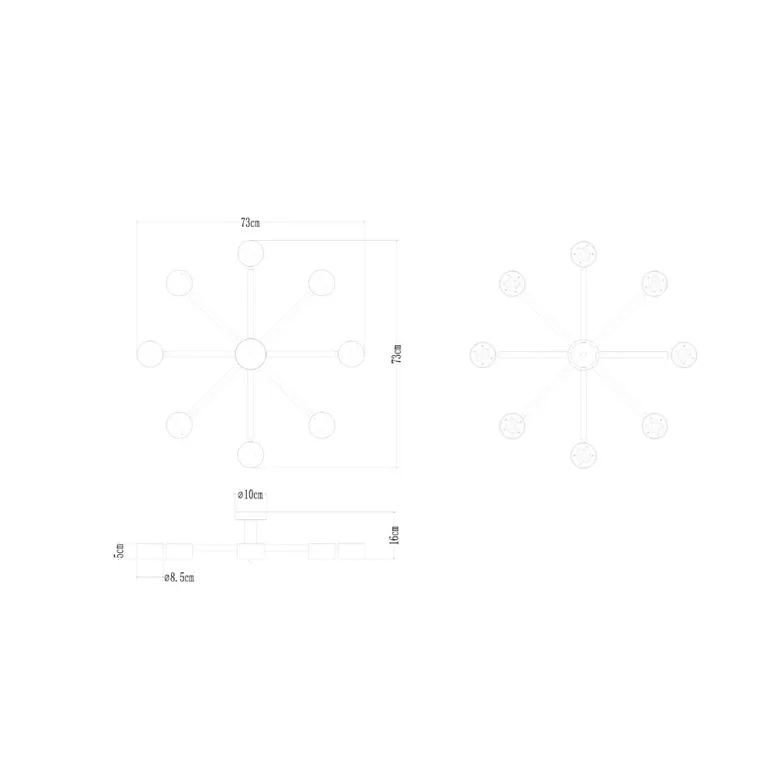 Преобладающий цвет плафонов: Белый, арматуры: Белый; материал изготовления арматуры: Металл, размеры, мм: / высота 160 / диаметр 730. Общая мощность – 96 Ватт, а максимальная площадь освещения до 15 м2. Основной тип ламп, предусмотренный производителем: Светодиодная с цоколем GX53. В зависимости от предпочтений можно использовать лампы теплового, холодного или нейтрального света, за исключением люстр с типом цоколя LED.