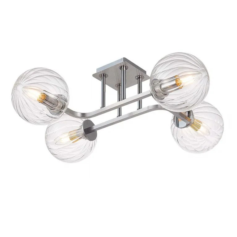 Преобладающий цвет люстры: Серый, плафонов: Прозрачный, арматуры: Серый; материал изготовления арматуры: Металл, размеры, мм: длина 578 / ширина 557 / высота 185 Общая мощность – 160 Ватт, а максимальная площадь освещения до 10 м2. Основной тип ламп, предусмотренный производителем: Накаливания с цоколем E14. В зависимости от предпочтений можно использовать лампы теплового, холодного или нейтрального света, за исключением люстр с типом цоколя LED.