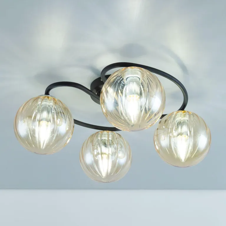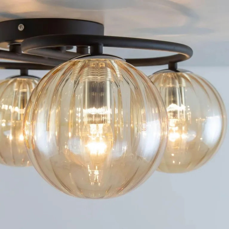 Преобладающий цвет люстры: Шампань, плафонов: Шампань, арматуры: Черный; материал изготовления арматуры: Металл, размеры, мм: / высота 200 / диаметр 510. Общая мощность – 160 Ватт, а максимальная площадь освещения до 10 м2. Основной тип ламп, предусмотренный производителем: Накаливания с цоколем E14. В зависимости от предпочтений можно использовать лампы теплового, холодного или нейтрального света, за исключением люстр с типом цоколя LED.