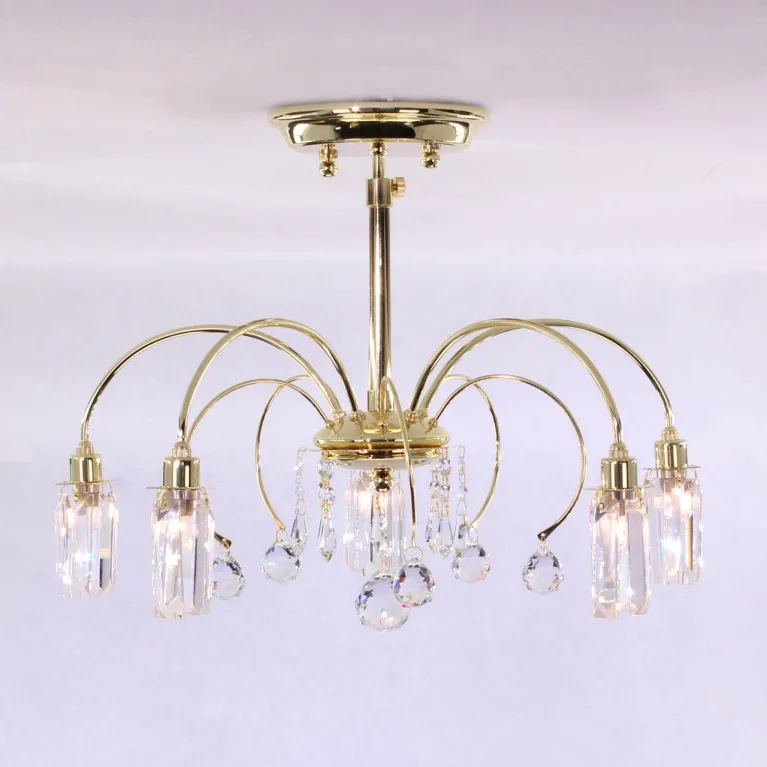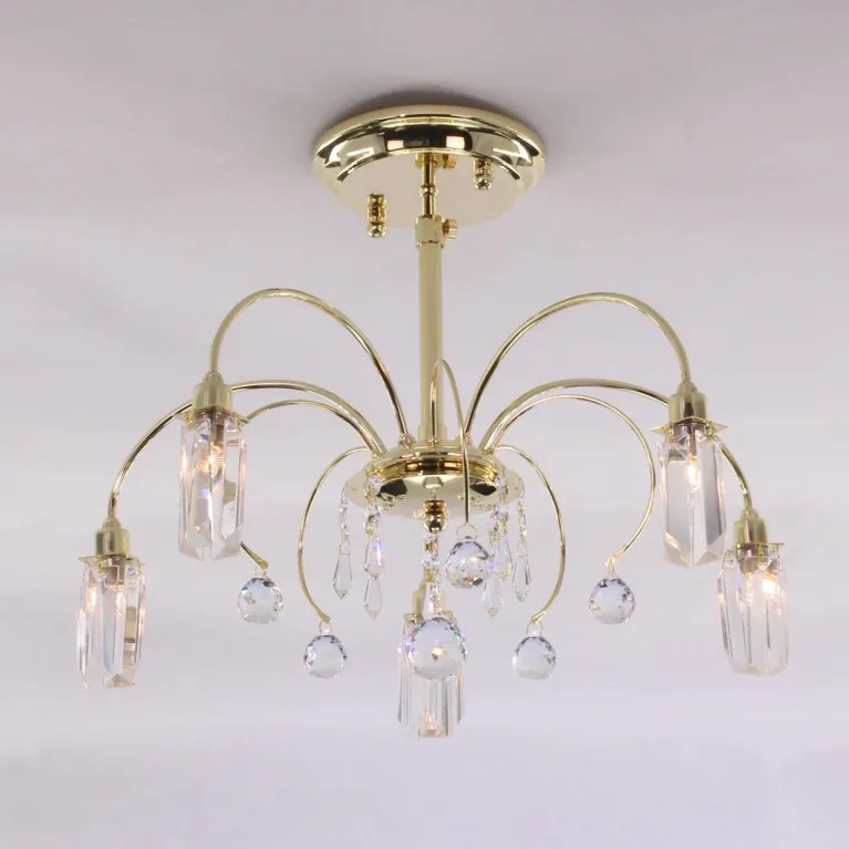 Преобладающий цвет люстры: Золотой, плафонов: Прозрачный, арматуры: Золото; материал изготовления арматуры: Металл, размеры, мм: / высота 330 / диаметр 490. Общая мощность – 300 Ватт, а максимальная площадь освещения до 16,7 м2. Основной тип ламп, предусмотренный производителем: Галогеновая с цоколем G9. В зависимости от предпочтений можно использовать лампы теплового, холодного или нейтрального света, за исключением люстр с типом цоколя LED.
