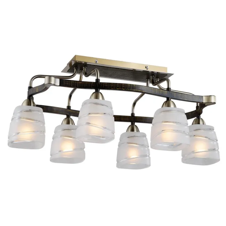 Преобладающий цвет люстры: Белый, плафонов: Белый, арматуры: Бронза; материал изготовления арматуры: Металл, размеры, мм: длина 620 / ширина 400 / высота 270 Общая мощность – 360 Ватт, а максимальная площадь освещения до 20 м2. Основной тип ламп, предусмотренный производителем: Накаливания с цоколем E14. В зависимости от предпочтений можно использовать лампы теплового, холодного или нейтрального света, за исключением люстр с типом цоколя LED.