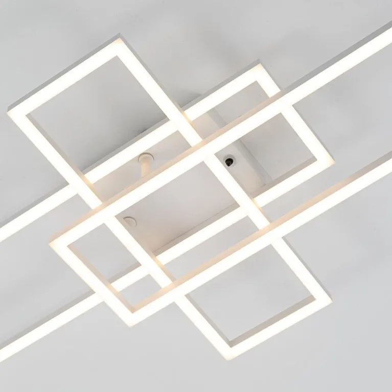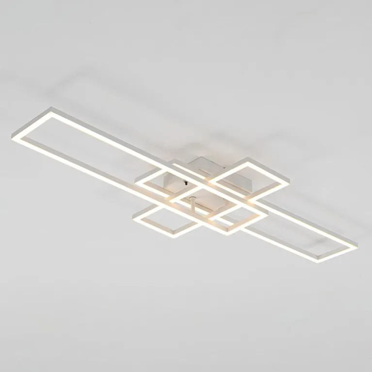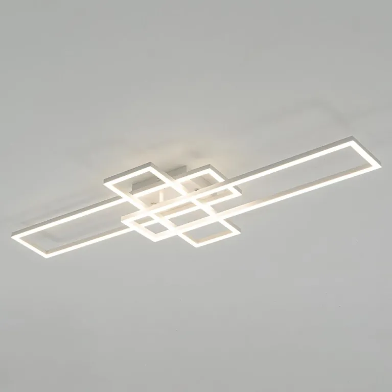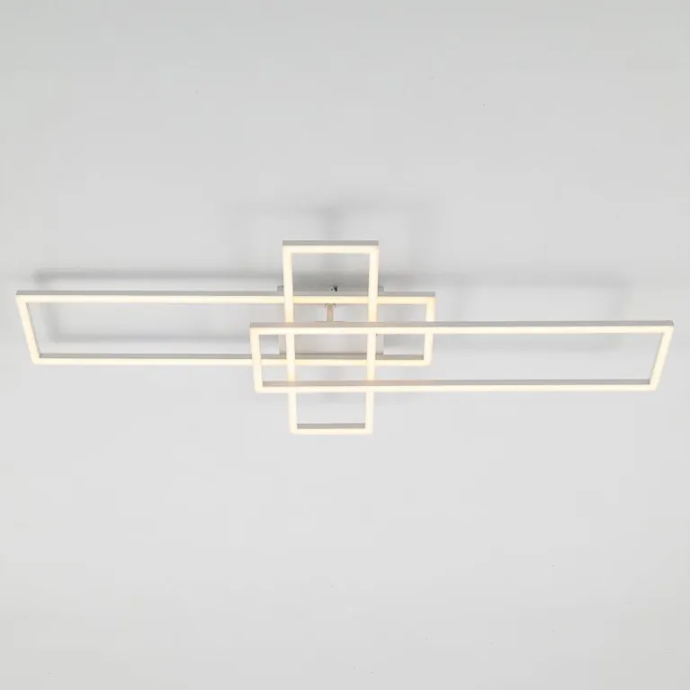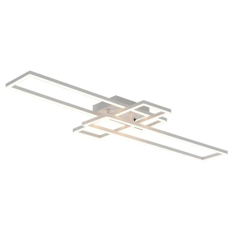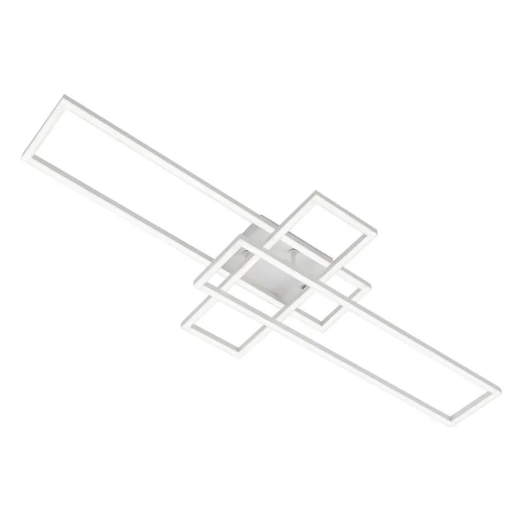 Преобладающий цвет плафонов: Белый, арматуры: Белый; материал изготовления арматуры: Металл, размеры, мм: длина 940 / ширина 365 / высота 85 / диаметр 920. Общая мощность – 64 Ватт, а максимальная площадь освещения до 20 м2. Основной тип ламп, предусмотренный производителем: Светодиодная с цоколем LED. В зависимости от предпочтений можно использовать лампы теплового, холодного или нейтрального света, за исключением люстр с типом цоколя LED.