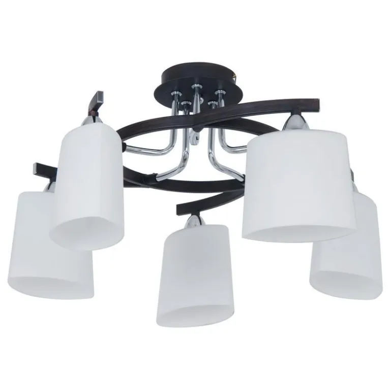 Преобладающий цвет люстры: Белый, плафонов: Белый, арматуры: Коричневый; материал изготовления арматуры: Металл, размеры, мм: / высота 250 / диаметр 520. Общая мощность – 300 Ватт, а максимальная площадь освещения до 16,7 м2. Основной тип ламп, предусмотренный производителем: Накаливания с цоколем E14. В зависимости от предпочтений можно использовать лампы теплового, холодного или нейтрального света, за исключением люстр с типом цоколя LED.