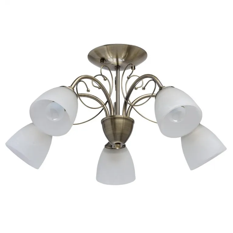 Преобладающий цвет люстры: Белый, плафонов: Белый, арматуры: Бронза; материал изготовления арматуры: Металл, размеры, мм: / высота 280 / диаметр 58. Общая мощность – 300 Ватт, а максимальная площадь освещения до 16,7 м2. Основной тип ламп, предусмотренный производителем: Накаливания с цоколем E27. В зависимости от предпочтений можно использовать лампы теплового, холодного или нейтрального света, за исключением люстр с типом цоколя LED.