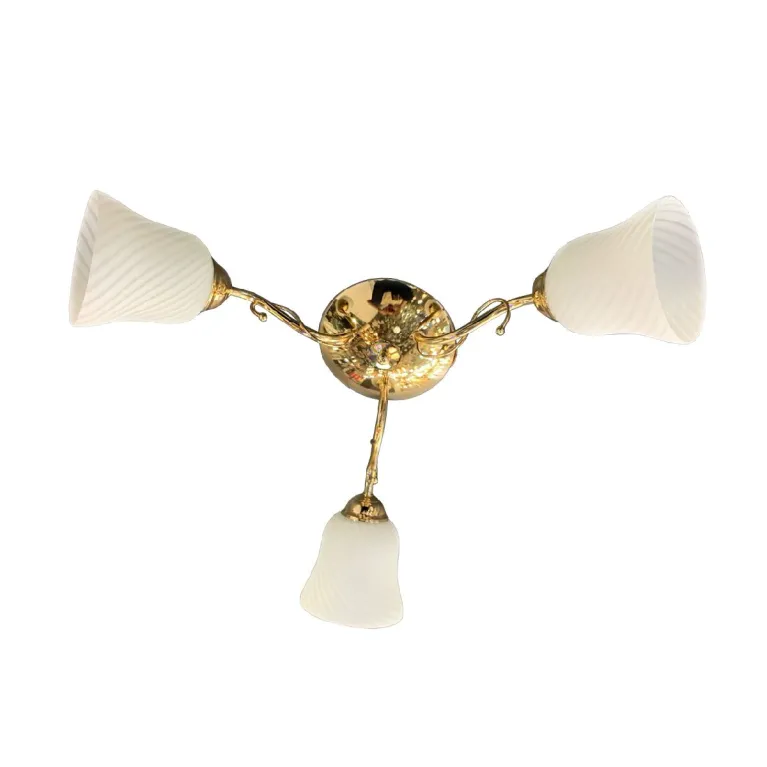 Люстра имеет три плафона, которые обеспечивают равномерное освещение помещения. Цоколь E27 позволяет использовать различные типы ламп, что даёт возможность настроить яркость и цветовую температуру по вашему вкусу.