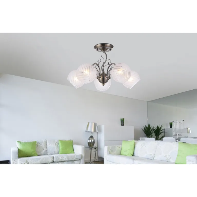 Преобладающий цвет плафонов: Белый, арматуры: Бронза; материал изготовления арматуры: Металл, размеры, мм: длина 600 / ширина 600 / высота 380 Общая мощность – 300 Ватт, а максимальная площадь освещения до 15 м2. Основной тип ламп, предусмотренный производителем: Накаливания с цоколем E14. В зависимости от предпочтений можно использовать лампы теплового, холодного или нейтрального света, за исключением люстр с типом цоколя LED.