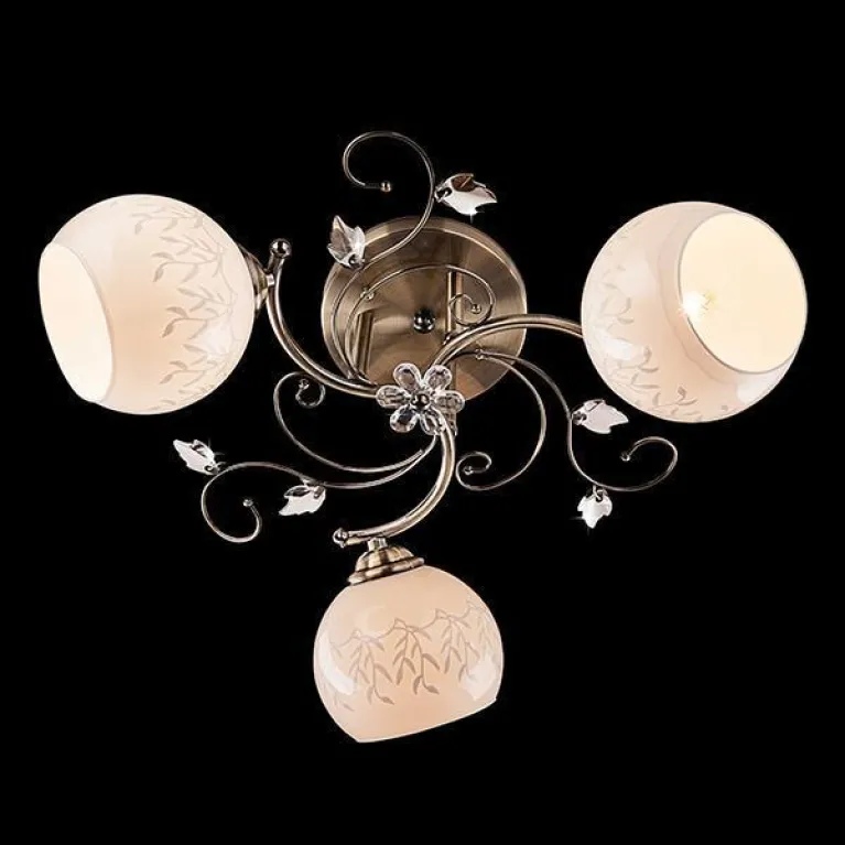 Преобладающий цвет люстры: Белый, плафонов: Белый, арматуры: Бронза; материал изготовления арматуры: Металл, размеры, мм: / высота 250 / диаметр 490. Общая мощность – 180 Ватт, а максимальная площадь освещения до 10 м2. Основной тип ламп, предусмотренный производителем: Накаливания с цоколем E27. В зависимости от предпочтений можно использовать лампы теплового, холодного или нейтрального света, за исключением люстр с типом цоколя LED.