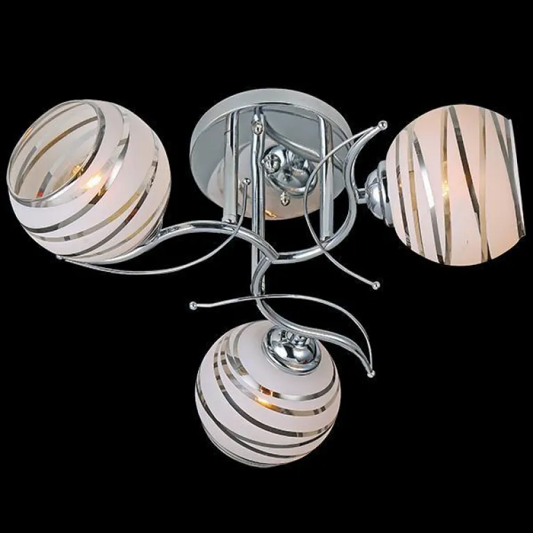 Преобладающий цвет люстры: Белый, плафонов: Белый, арматуры: Хром; материал изготовления арматуры: Металл, размеры, мм: / высота 250 / диаметр 490. Общая мощность – 180 Ватт, а максимальная площадь освещения до 10 м2. Основной тип ламп, предусмотренный производителем: Накаливания с цоколем E27. В зависимости от предпочтений можно использовать лампы теплового, холодного или нейтрального света, за исключением люстр с типом цоколя LED.