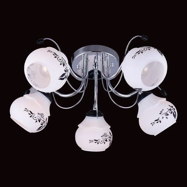 Преобладающий цвет люстры: Белый, плафонов: Белый, арматуры: Хром; материал изготовления арматуры: Металл, размеры, мм: / высота 210 / диаметр 520. Общая мощность – 300 Ватт, а максимальная площадь освещения до 16,7 м2. Основной тип ламп, предусмотренный производителем: Накаливания с цоколем E27. В зависимости от предпочтений можно использовать лампы теплового, холодного или нейтрального света, за исключением люстр с типом цоколя LED.