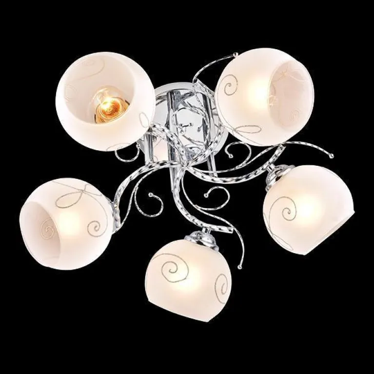 Преобладающий цвет люстры: Белый, плафонов: Белый, арматуры: Хром; материал изготовления арматуры: Металл, размеры, мм: / высота 220 / диаметр 470. Общая мощность – 300 Ватт, а максимальная площадь освещения до 16,7 м2. Основной тип ламп, предусмотренный производителем: Накаливания с цоколем E27. В зависимости от предпочтений можно использовать лампы теплового, холодного или нейтрального света, за исключением люстр с типом цоколя LED.