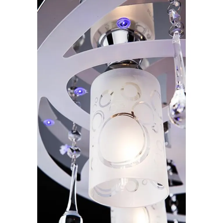 Преобладающий цвет люстры: Белый, плафонов: Белый, арматуры: Хром; материал изготовления арматуры: Металл, размеры, мм: / высота 190 / диаметр 550. Общая мощность – 240 Ватт, а максимальная площадь освещения до 13,3 м2. Основной тип ламп, предусмотренный производителем: Накаливания с цоколем E14. В зависимости от предпочтений можно использовать лампы теплового, холодного или нейтрального света, за исключением люстр с типом цоколя LED.