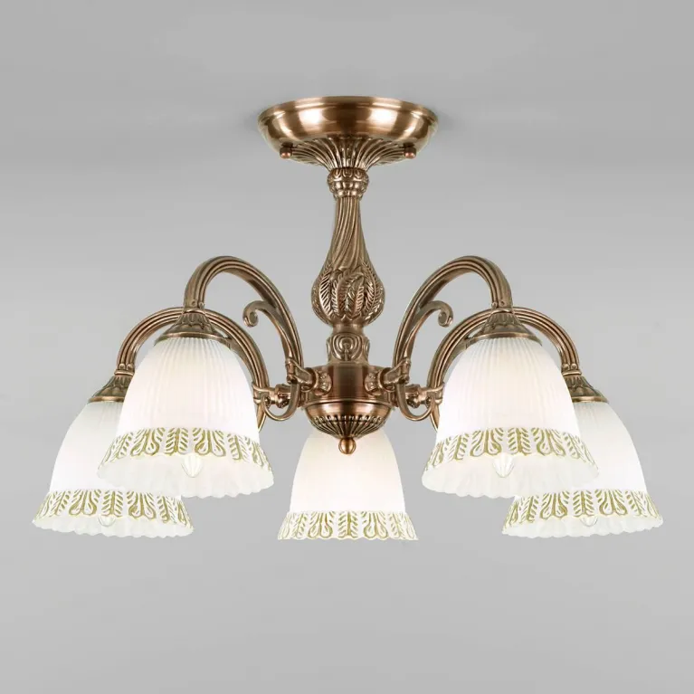 Корпус люстры выполнен из прочного металла с эффектным покрытием «античная бронза», которое придает изделию роскошный и утонченный вид. Плафоны изготовлены из качественного матового стекла, благодаря чему светильники не только красиво выглядят, но и долго сохраняют первоначальный внешний вид.