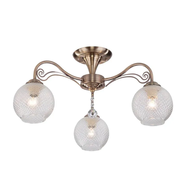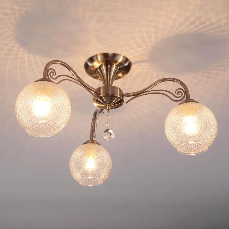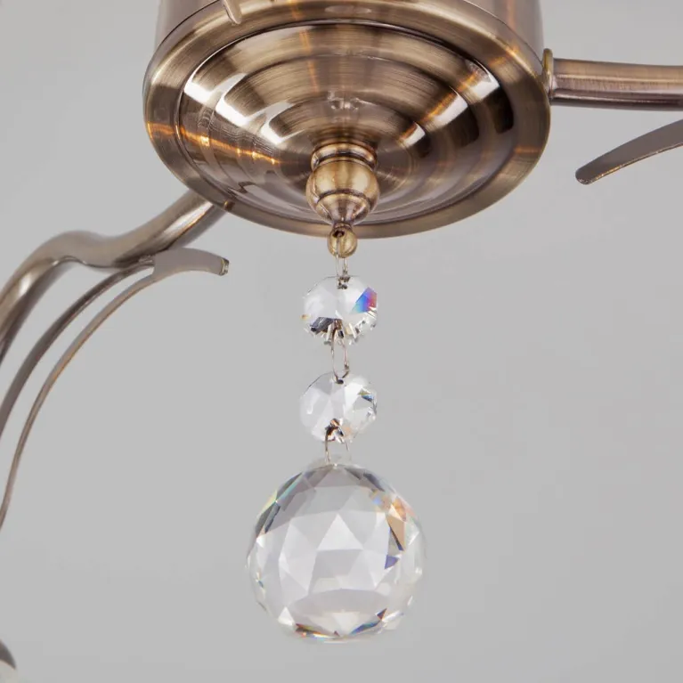 Преобладающий цвет люстры: Белый, плафонов: Белый, арматуры: Бронза; материал изготовления арматуры: Металл, размеры, мм: / высота 250 / диаметр 490. Общая мощность – 180 Ватт, а максимальная площадь освещения до 12 м2. Основной тип ламп, предусмотренный производителем: Накаливания с цоколем E27. В зависимости от предпочтений можно использовать лампы теплового, холодного или нейтрального света, за исключением люстр с типом цоколя LED.